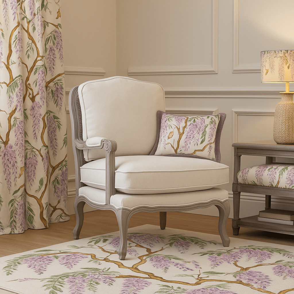 🪑Florence Chair – Country Hedgerow Lotus Natural Oak Frameby Voyage Maison Bring a touch of painterly charm and countryside elegance...