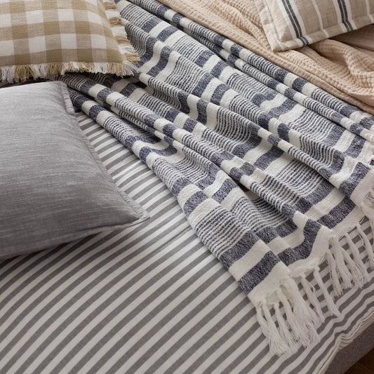 WOOL BLEND RIBBED GREY/BROWN THROW by Essentials