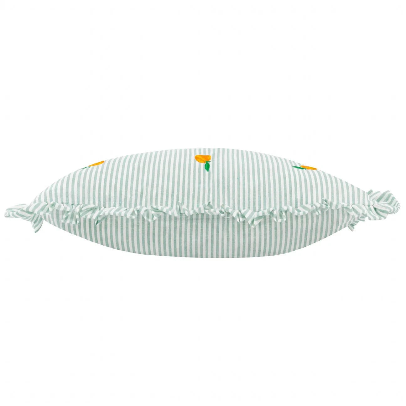 The Les Fruits Striped Ruffle Cushion is a charming addition to any home interior, blending playful design with elegant details. Featuring a ruffle trim and printed pinstripe fabric on both the face and reverse, it creates a relaxed yet stylish appeal. Detailed with intricate fruity and floral motif embroidery, this cushion adds depth and character to a room, making it stand out effortlessly. Crafted for those seeking on-trend designs, it provides a perfect balance between classic patterns and modern accents, ideal for creating a statement while remaining versatile across different décor styles. A thoughtful choice for elevating spaces with personality.