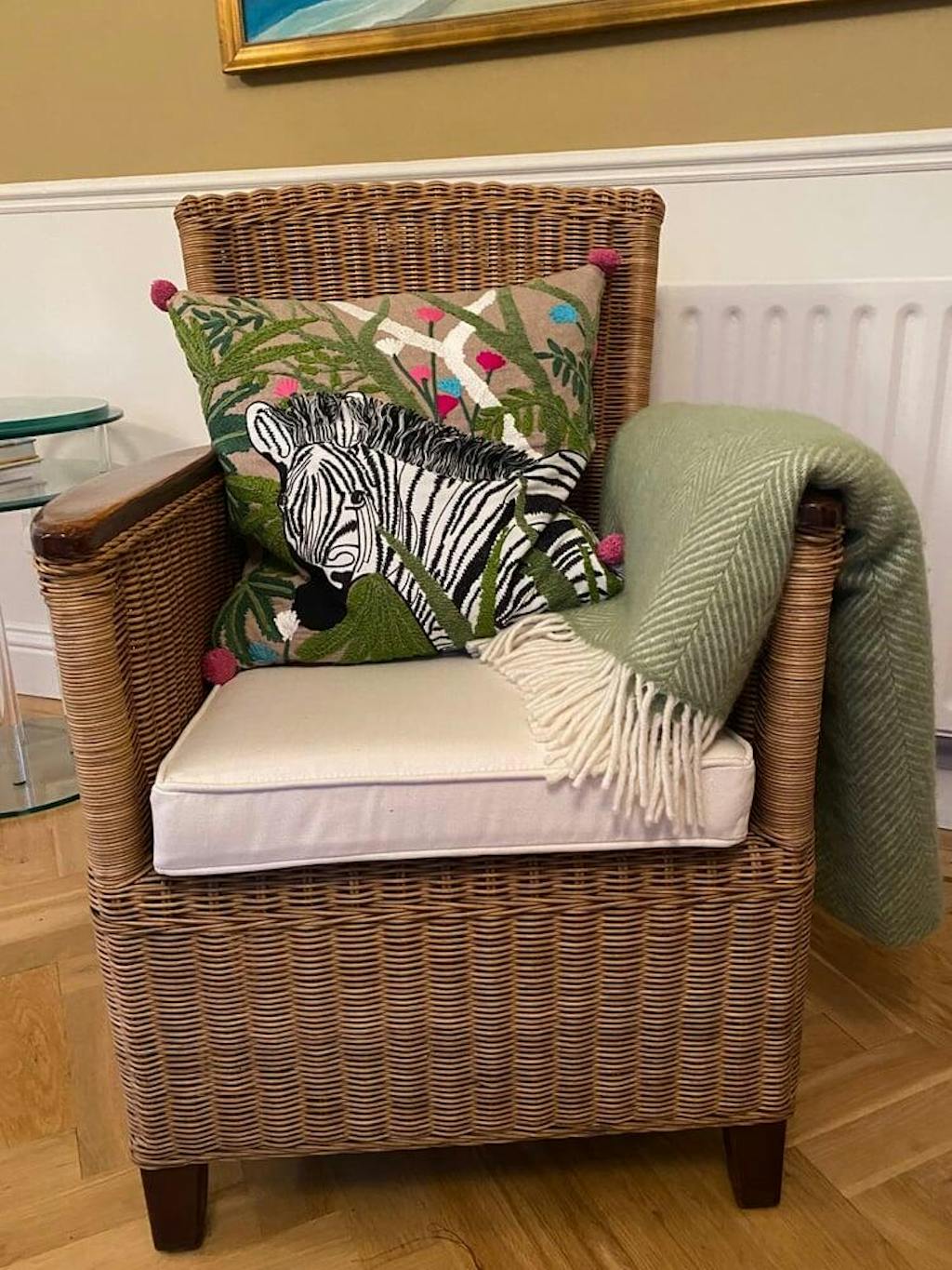 The Premium Zebra Embroidered feather-filled Cushion in Multicolour by Wylder is a stunning and artistic home accessory that adds a touch of elegance and sophistication to any living space.