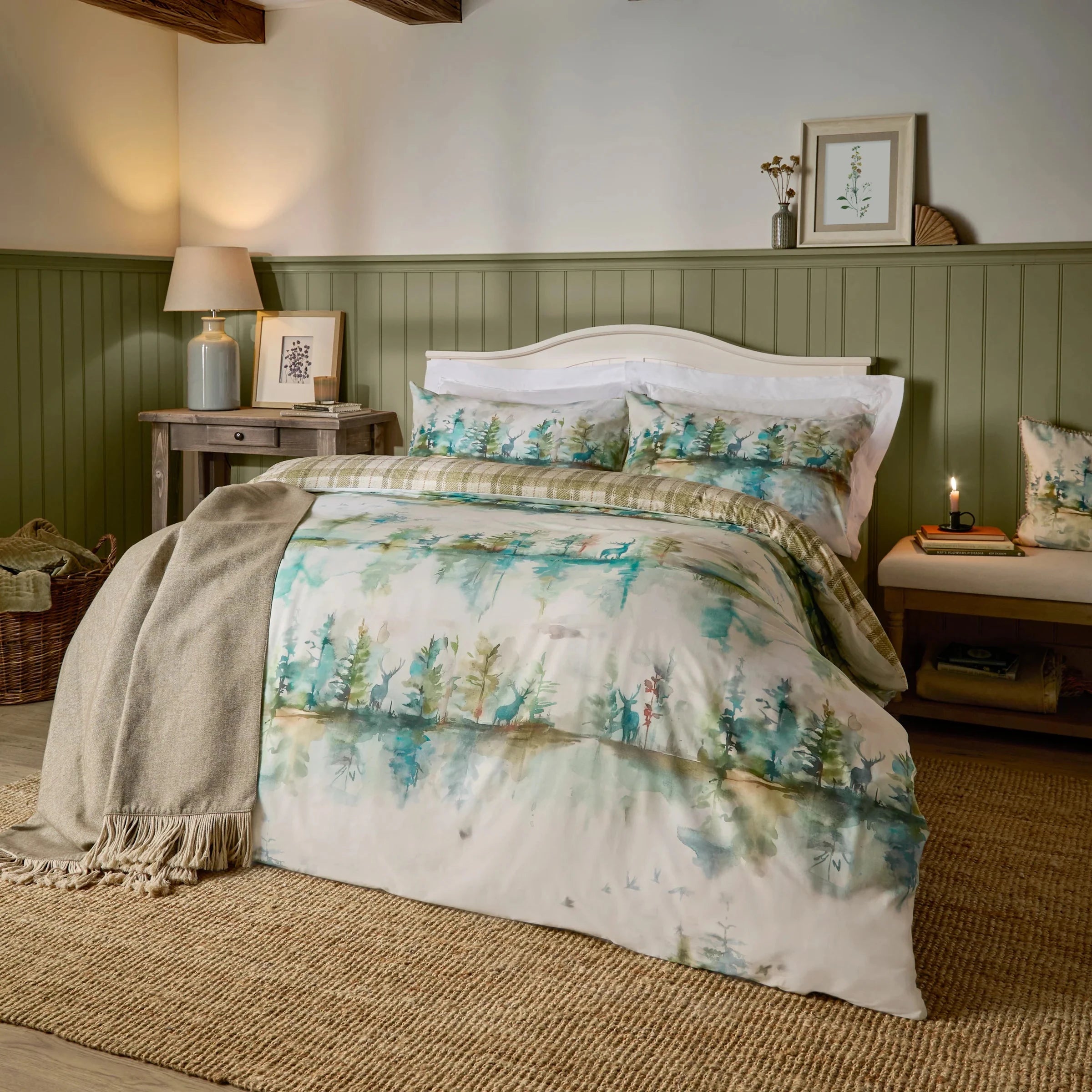 - Featuring a printed hazy woodland scene with a stag, adding countryside elegance to your bedroom.
